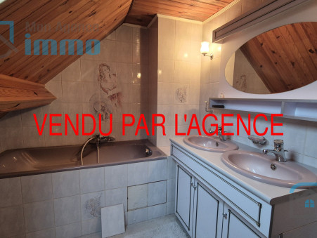 L’étage débouche sur un palier distribuant deux chambres, une troisième grande chambre avec wc, une salle de bains avec double vasque.