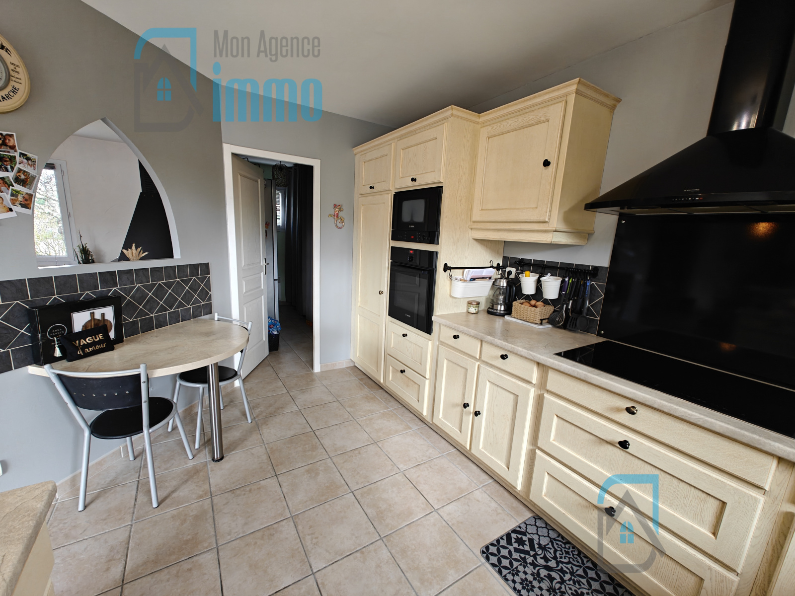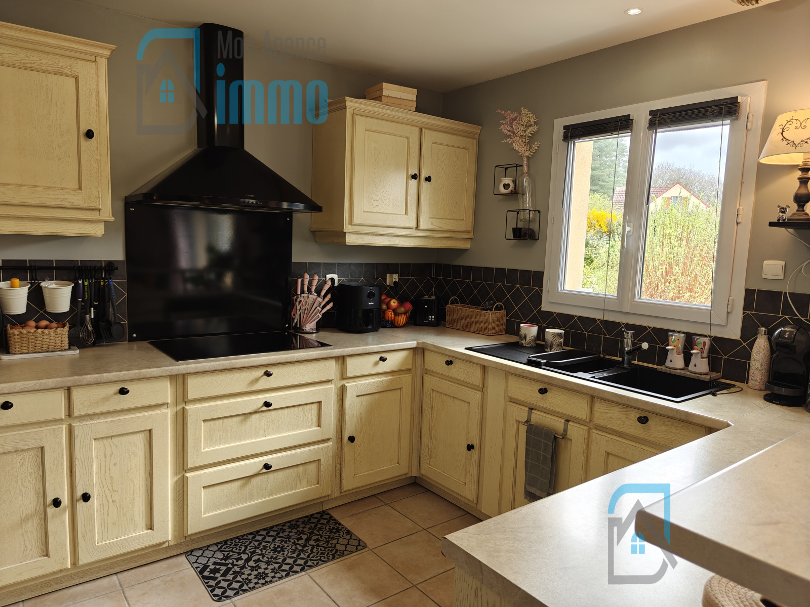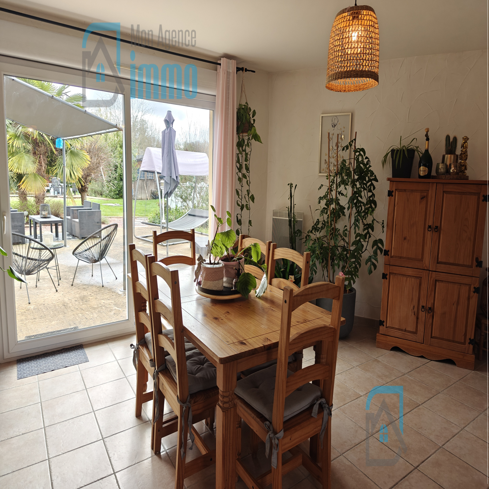 Il se compose d‘une entrée avec placard, d’une belle pièce de vie lumineuse avec cuisine aménagée et équipée ouverte sur le séjour avec poêle à bois et accès direct à la terrasse, pour profiter pleinement des extérieurs, d’un cellier-buanderie ouvrant sur le jardin.